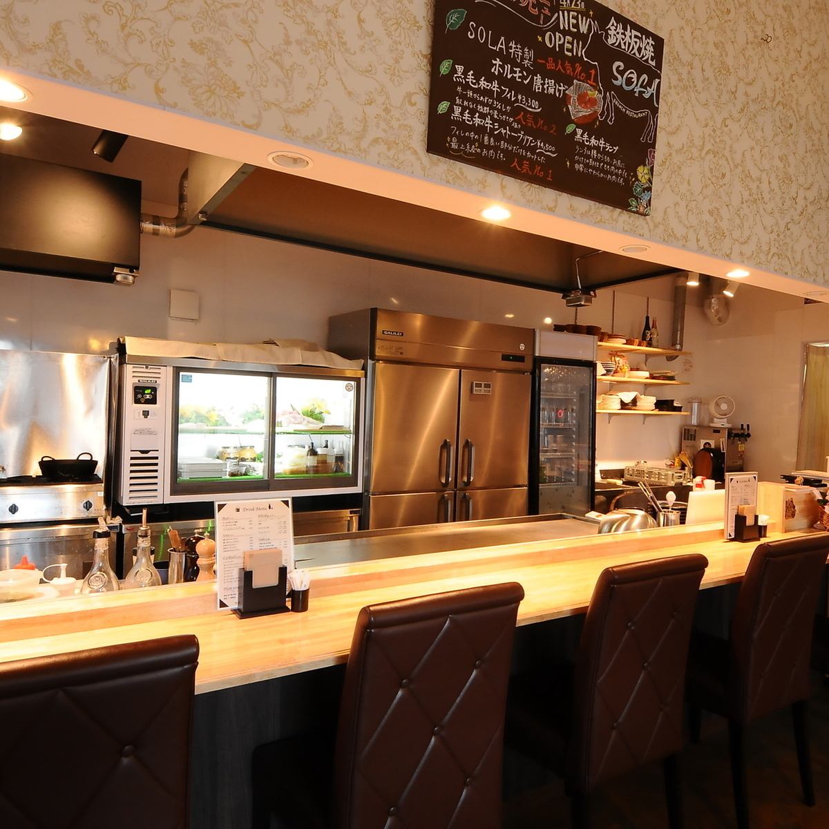 【鉄板焼の臨場感を楽しめる☆】カウンター席は5席ご用意しており、鉄板焼きならではのライブ感を楽しめる特別な空間。目の前でシェフが焼き上げる新鮮な食材を見ながら、会話も弾むこと間違いなし◎大切な人とのディナーや会食等にもぴったりです。